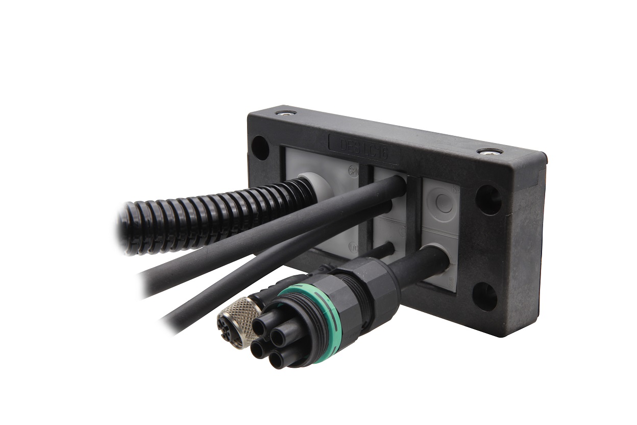 Il DES LC16 è un telaio divisibile progettato per ospitare diverse combinazioni di cavi, con o senza connettori. È compatibile con passacavi piccoli e grandi delle famiglie SPC e SPN.