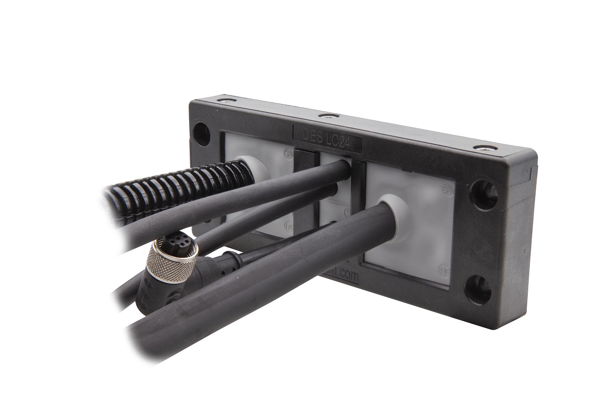 Il DES LC24 è un telaio divisibile progettato per ospitare diverse combinazioni di cavi, con o senza connettori. È compatibile con passacavi piccoli e grandi delle famiglie SPC e SPN.